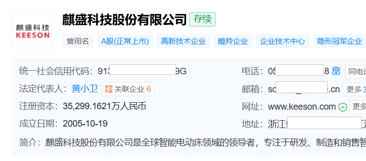 天眼查显示,麒盛科技成立于2005年10月,位于浙江省嘉兴市,2019年10月在上交所主板上市,专注于研发、制造和销售智能卧室家具及健康睡眠技术解决方案。
