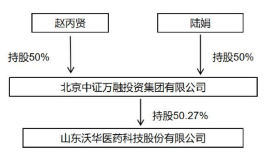 目前中证万融仍持有沃华医药 50.27% 股份,其控股股东地位不变。赵丙贤继续担任公司董事长及法人代表,但由于其与陆娟在控股股东层面持股比例相同,任何一方均无法单独控制公司。
