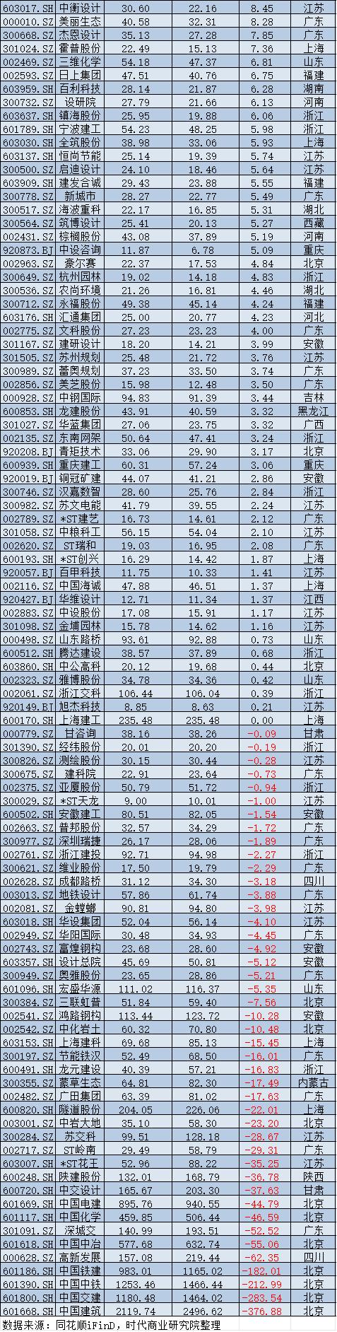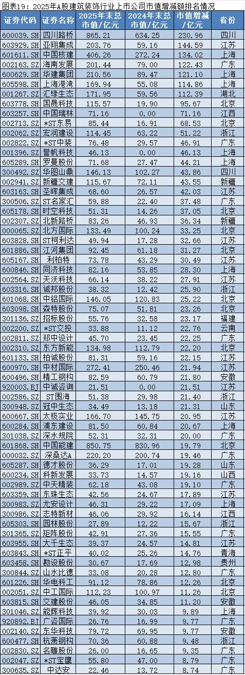 建筑装饰:传统地产业务承压,市值增加最多的是四川路桥,市值减少最多的是中国建筑