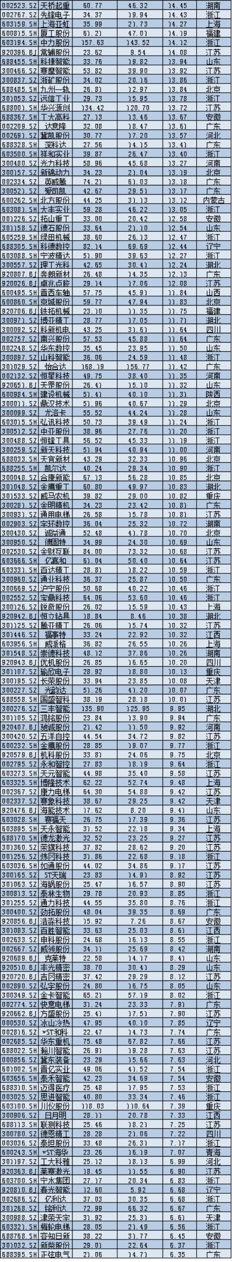 联合动力(301656.SZ)作为新上市公司,市值增长634.83亿元,排名第二,反映出市场对新能源汽车动力系统核心领域的高度关注。