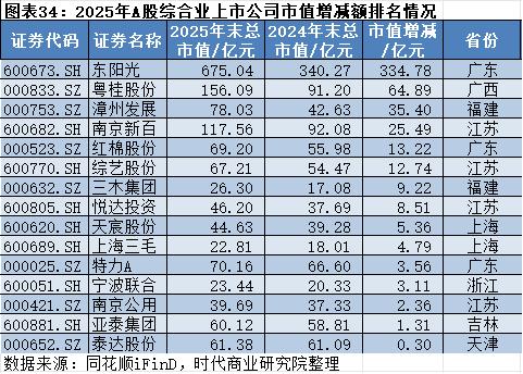2025年综合行业总市值增长525.02亿元至1557.87亿元,增幅明显但主要由个别公司驱动,行业整体市场关注度相对较低。