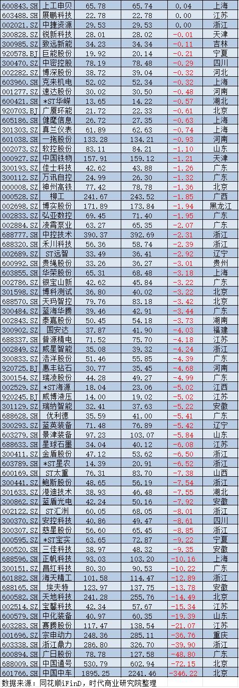 机械设备:高端制造溢价显著,市值增加最多的是恒立液压,市值减少最多的是中国中车