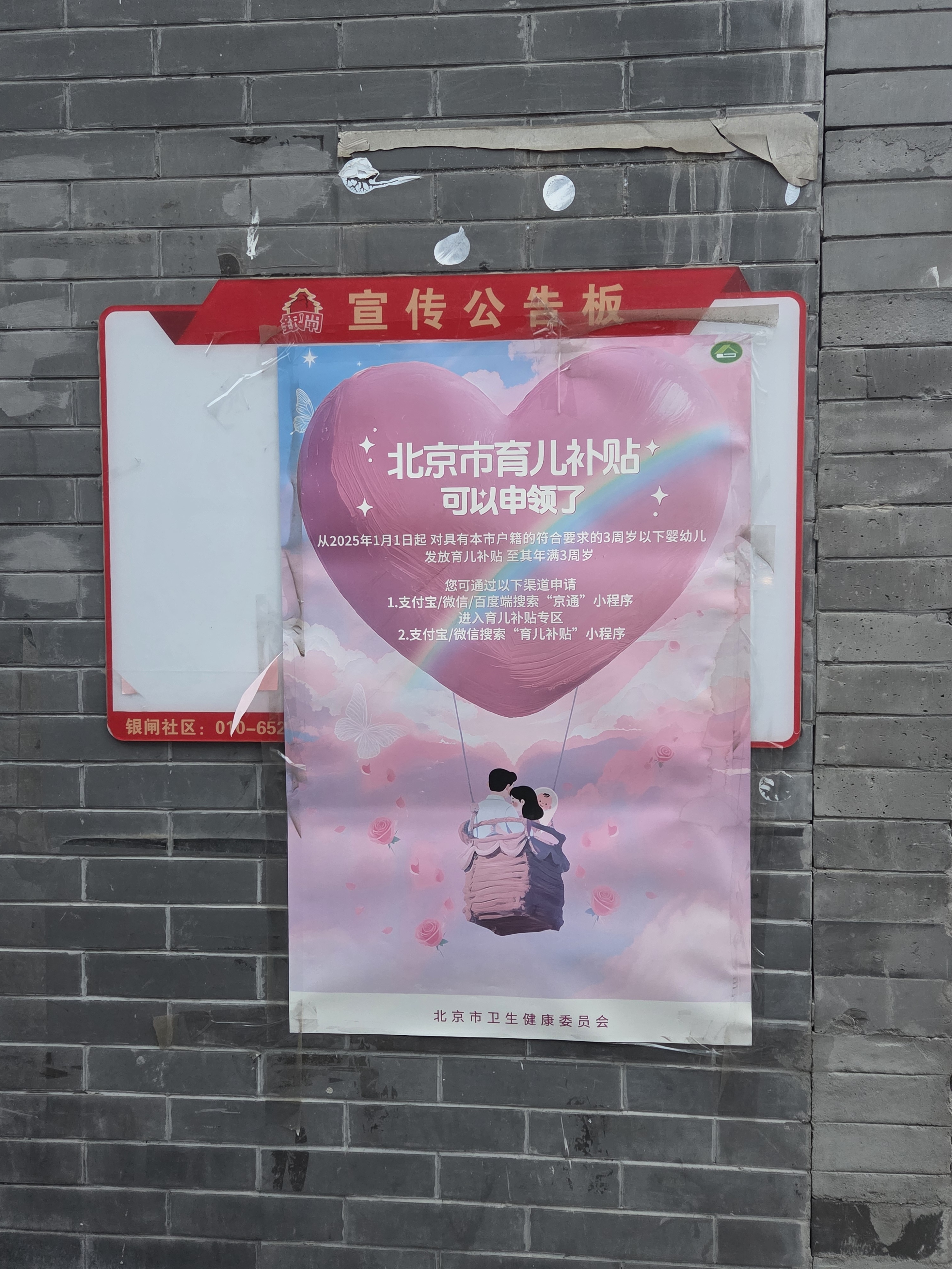 北京街边张贴申领育儿补贴海报 时代周报记者阿力米热/摄