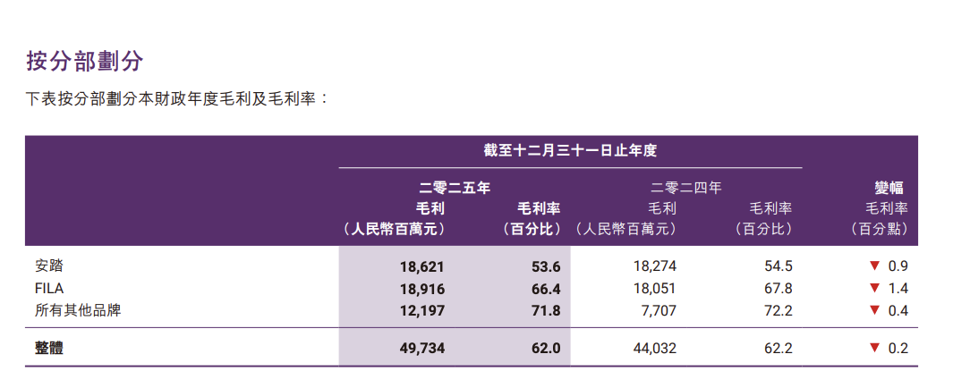 与此同时,主品牌的角色也在发生调整。财报显示,安踏主品牌收入增速为3.7%,低于集团整体水平,其经营溢利率同比下降0.3个百分点至20.7%。