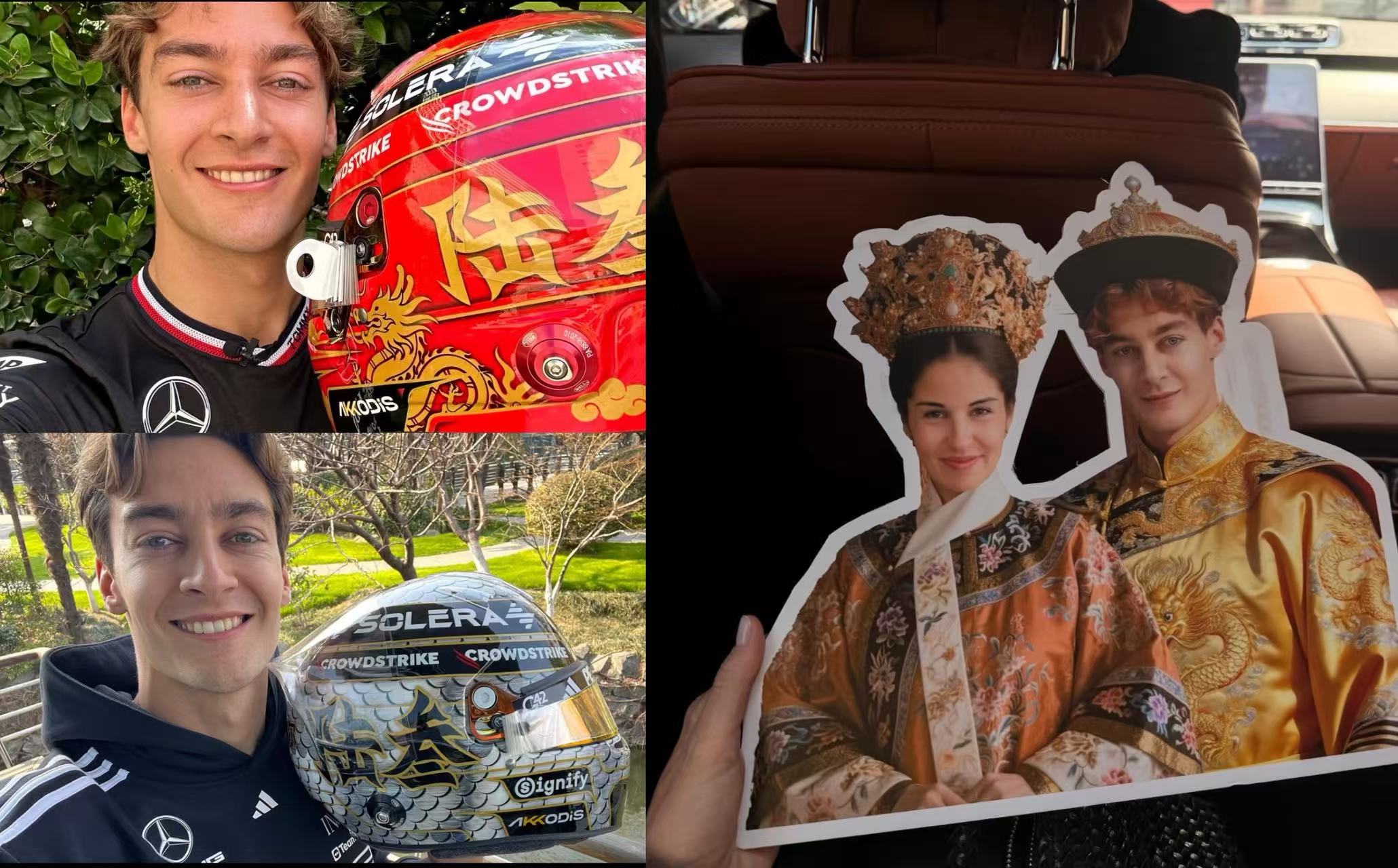 车手拉塞尔晒出他的中国站特盔和粉丝设计的礼物(图源:网络)