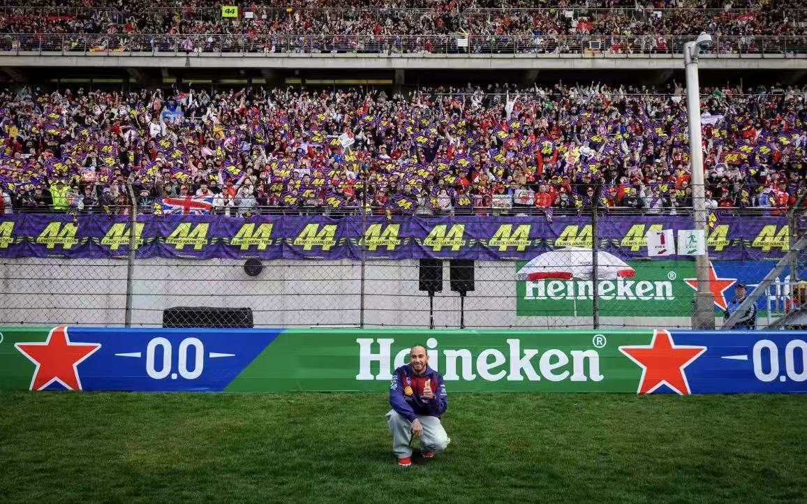 车手汉密尔顿与他的粉丝看台合影(图源:网络)