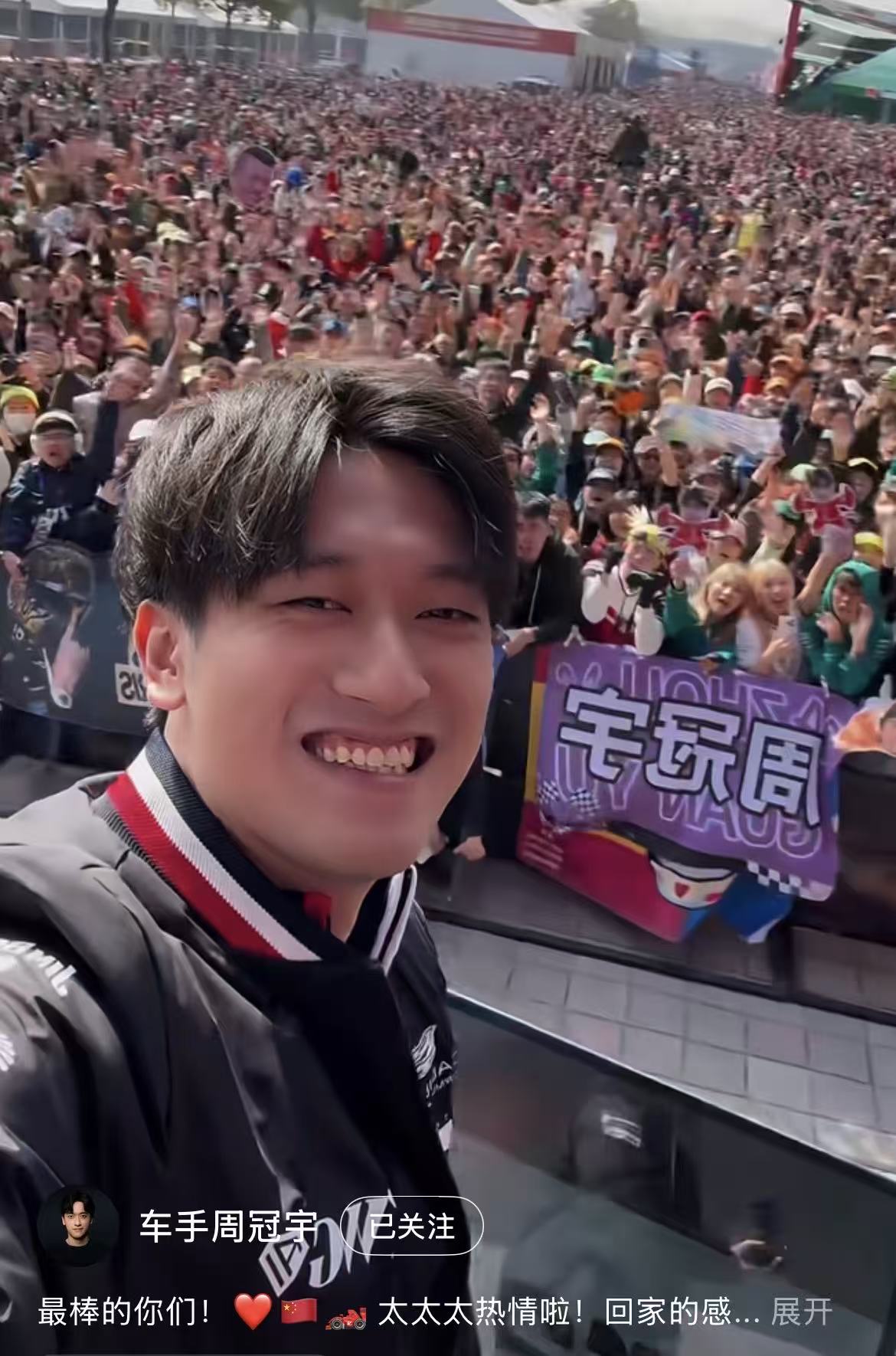 中国车手周冠宇和粉丝(图源:网络截图)