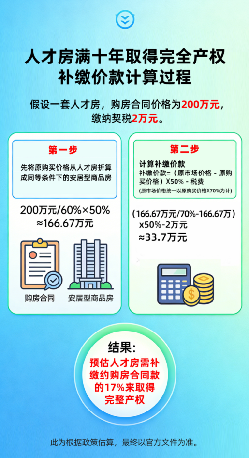 多重因素叠加,人才房的价值优势愈发凸显。目前,深圳市住建局信息显示,可售型人才房签订买卖合同满10年后,可按明确公式补缴差价取得完全产权。此后,房屋便可像普通商品房一样自由交易、继承。更关键的是,随着深圳已停止新增可售型人才房供应,现存可售人才房稀缺性愈发显现。