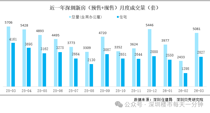 深圳楼市 “小阳春”持续升温,新房市场迎来明显回暖。据深圳贝壳研究院统计,3月深圳新房成交5081套,环比增长109%,其中住宅成交2827套,环比增长118%。