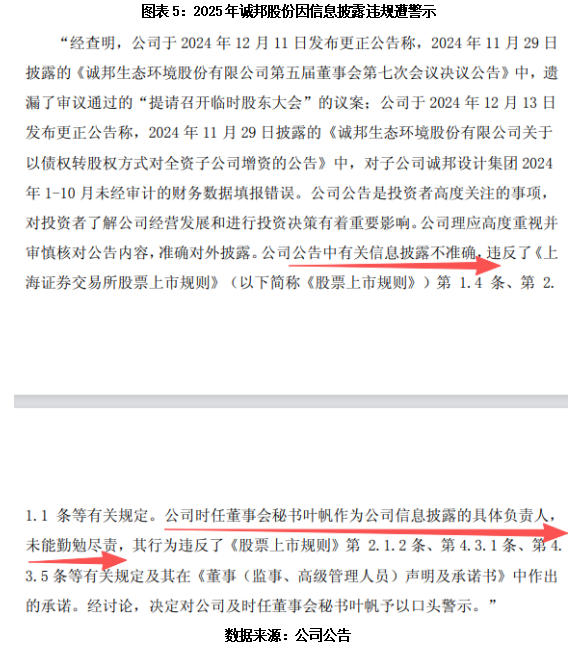 在内控层面,诚邦股份信息披露与内部管控存在一定的不足。2025年1月,诚邦股份因相关公告信息披露不准确、子公司财务数据填报有误,收到上海证券交易所下发的口头警示,相关违规事项涉及时任董事会秘书叶帆。此外,2024年该公司还变更了审计机构,将合作多年的中汇会计师事务所(特殊普通合伙)更换为立信中联会计师事务所(特殊普通合伙)。