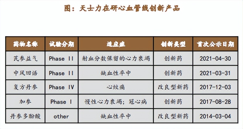 在心衰和心梗领域,公司还布局了创新中药加参片,该药物为国内以心衰为确切适应症的首个组分中药产品。