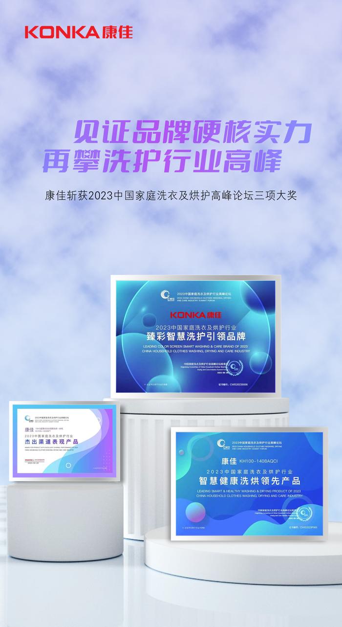 2021洗衣行业高峰论坛上,康佳洗衣机摘获“智慧洗烘创新产品”等三项大奖;2022中国洗衣机·干衣机行业高峰论坛上,康佳洗衣机获得“智慧洗护领先品牌”等三项大奖;算上本次,康佳洗衣机的品牌力和产品力已经连续三年获得了行业的高度认可。