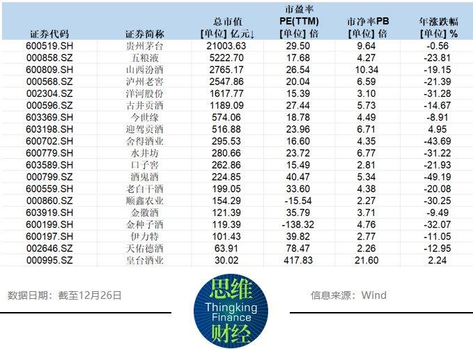目前A股白酒板块普遍市净率较低,天佑德酒(002646.SZ)、顺鑫农业、伊力特、口子窖该指标不超过3倍,洋河股份、五粮液、金徽酒、舍得酒业、老白干酒在4倍左右。