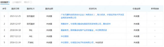 根据企查查信息,自2016年成立以来,中芯宁波共经历了5轮融资,一路推高公司估值,不过5轮融资均未披露融资金额。最新一轮融资时间在2023年12月25日,公司注册资本由26.89亿元变更为47.33亿元。