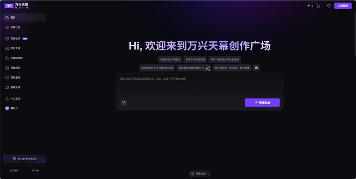 (万兴科技旗下AIGC视频创作平台万兴天幕创作广场)