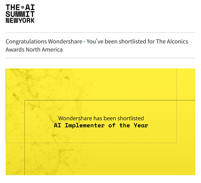(万兴科技入围The AIconics Awards“年度AI实施企业”)