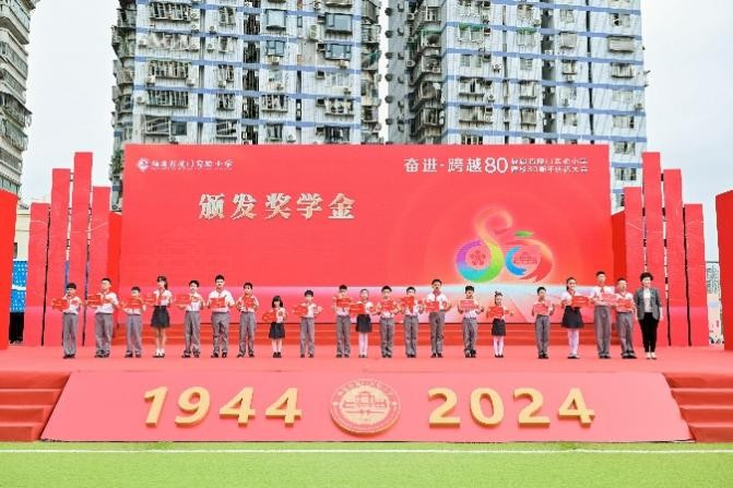 (厦门实验小学80周年庆典活动上颁发“闽都-集友陈嘉庚奖助学金”)