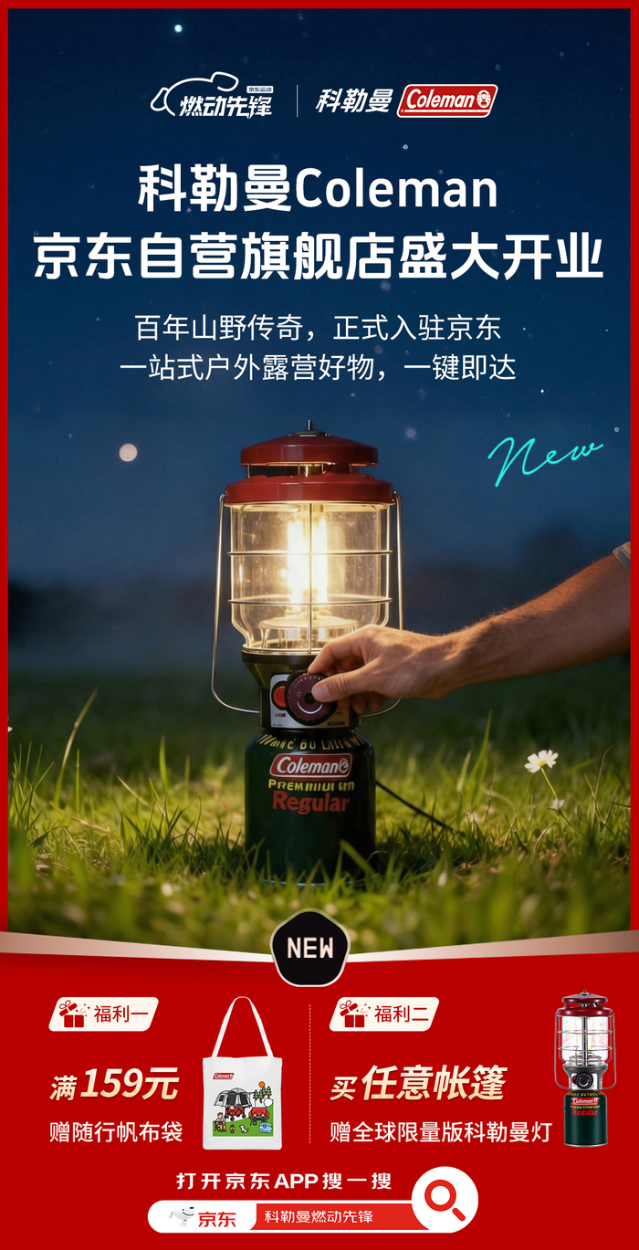 1月14日,百年露营品牌Coleman科勒曼正式入驻京东,品牌新品红色可折叠营地车将在京东首发,下单还可获赠品牌斗篷。现在打开京东APP搜索“科勒曼燃动先锋”,可直达“燃动先锋”会场,下单有机会获赠品牌帆布包、户外挎包、白色卫衣。活动期间每日任意下单可抽取全球限量版露营灯,同时还可享加码低价优惠,尽情挑选最全最专业的户外好物。