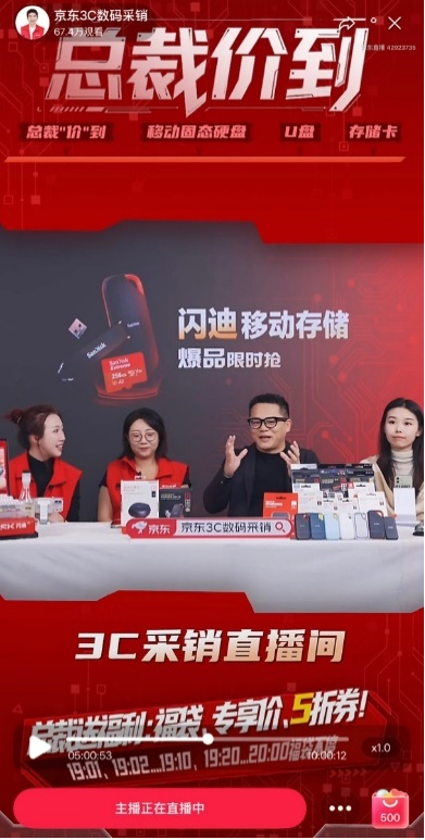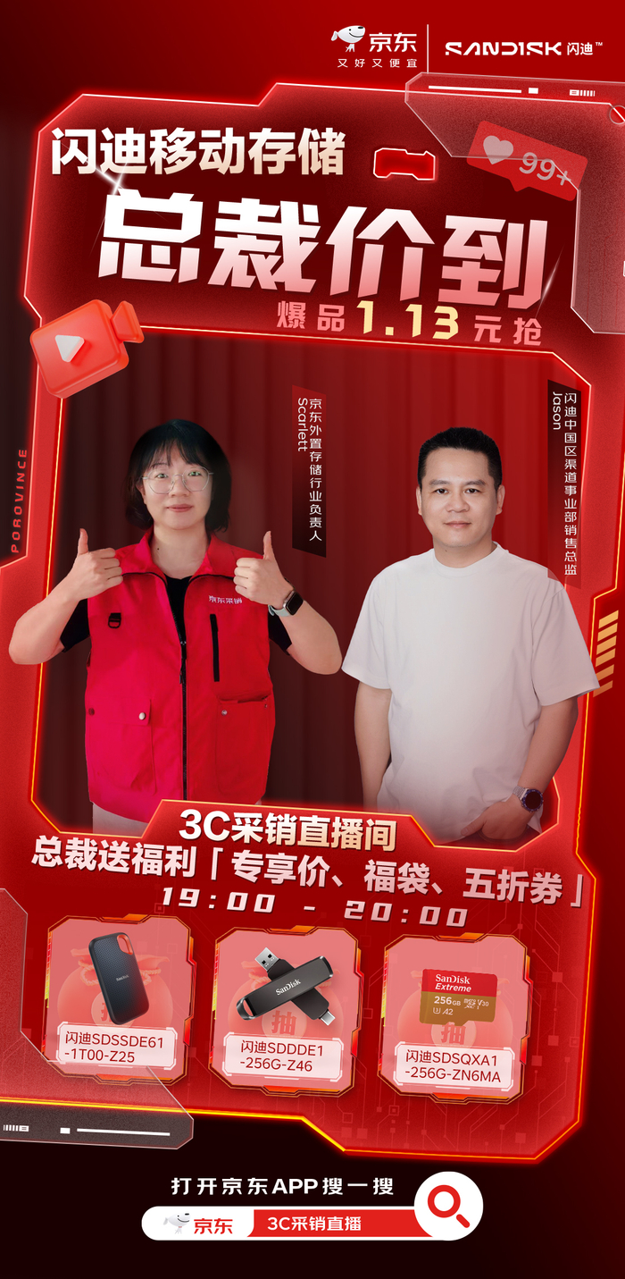 闪迪“总裁价到”直播专场圆满收官 携手京东为用户升级“无忧存储”新体验