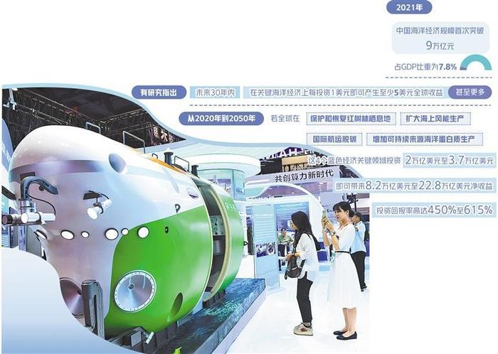 另一方面,蓝色经济蕴藏着中国—东盟合作拓展的巨大空间。有研究指出,未来30年内,在关键的海洋经济上每投资1美元即可产生至少5美元的全球收益,甚至更多。从2020年到2050年,若全球在保护和恢复红树林栖息地、扩大海上风能生产、国际航运脱碳和增加可持续来源的海洋蛋白质生产这4个蓝色经济的关键领域投资2万亿美元至3.7万亿美元,即可带来8.2万亿美元至22.8万亿美元的净收益,投资回报率高达450%至615%。这也意味着,以可持续发展为目标的蓝色经济合作将带动中国—东盟全方位合作进程。