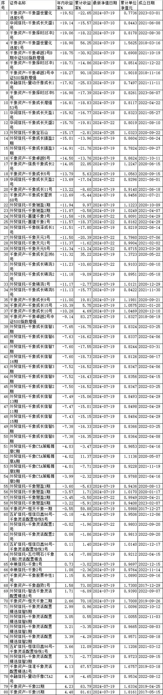 量化私募千象资产80只产品年内61只下跌 14只跌超15%