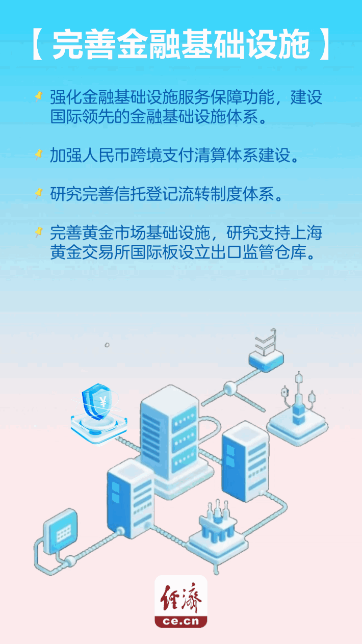为贯彻落实党的二十届三中全会“加快建设上海国际金融中心”和中央金融工作会议“增强上海国际金融中心的竞争力和影响力”的部署要求,近日,中央金融委员会印发《关于支持加快建设上海国际金融中心的意见》。《意见》明确,经过五至十年的建设,上海国际金融中心能级全面提升,现代金融体系的适应性、竞争力、普惠性显著提高,金融开放枢纽门户功能显著强化,人民币资产全球配置中心、风险管理中心地位显著增强,基本建成与我国综合国力和国际影响力相匹配的国际金融中心。主要举措请看↓