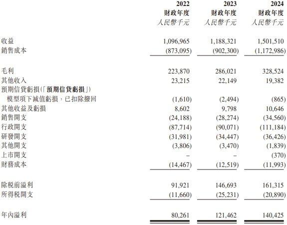 2022年至2024年,香江电器收益分别为10.97亿元、11.88亿元和15.02亿元,年内溢利分别为8026.1万元、1.21亿元和1.40亿元。
