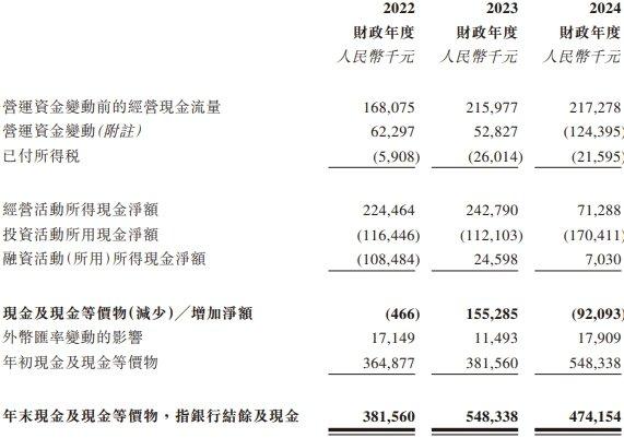 2022年至2024年,香江电器经营活动所得现金净额分别为2.24亿元、2.43亿元和7128.8万元。