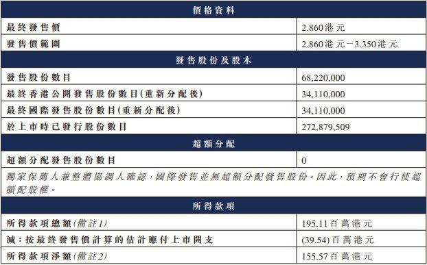 香江电器的最终发售价为2.860港元,所得款项总额为195.11百万港元,扣除按最终发售价计算的估计应付上市开支39.54百万港元后,所得款项净额为155.57百万港元。
