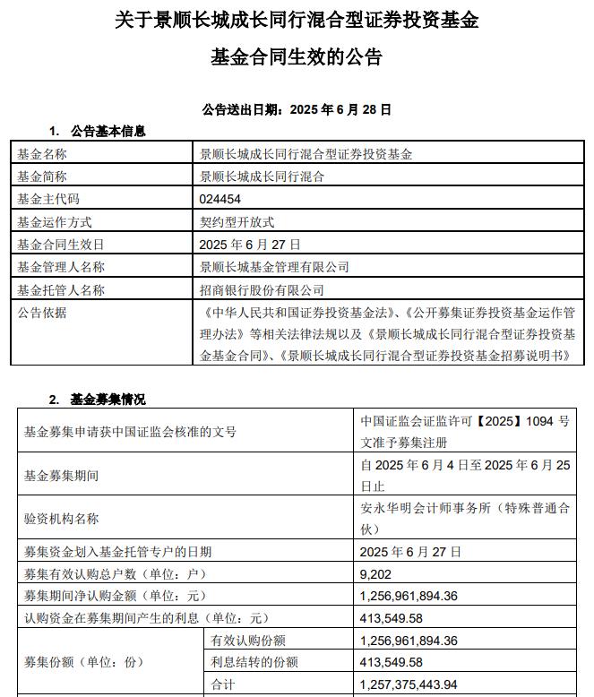 景顺长城成长同行混合成立 规模12.57亿元
