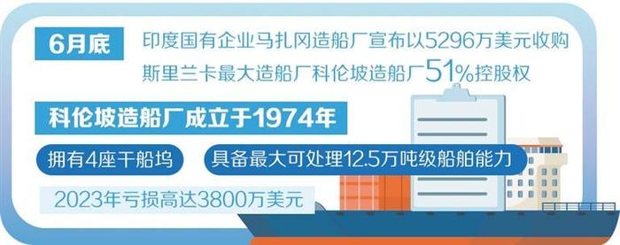 6月底,印度国有企业马扎冈造船厂(MDL)宣布以5296万美元收购斯里兰卡最大造船厂——科伦坡造船厂51%的控股权,交易主要通过购买日本尾道造船原持股份及认购新股份实现。这是印度大型造船企业的首次跨国收购,标志着印度造船业国际化迈出关键一步。
