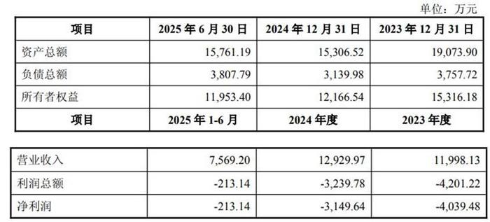 2023年、2024年、2025年上半年,磐启微实现营业收入分别为11,998.13万元、12,929.97万元、7,569.20万元,净利润分别为-4,039.48万元、-3,149.64万元、-213.14万元。
