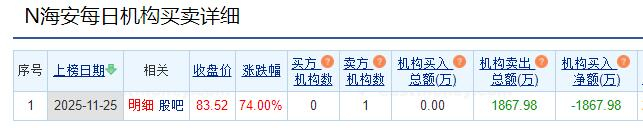 海安集团龙虎榜:机构净卖出1868万元