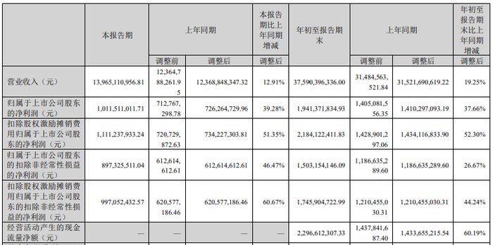 前三季度,领益智造实现营业收入375.90亿元,同比增长19.25%;归属于上市公司股东的净利润19.41亿元,同比增长37.66%;归属于上市公司股东的扣除非经常性损益的净利润15.03亿元,同比增长26.67%;经营活动产生的现金流量净额22.97亿元,同比增长60.19%。