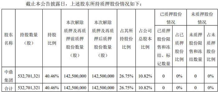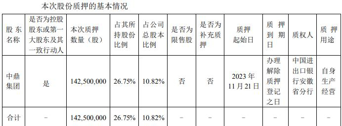 据公司2023年11月23日披露的关于控股股东部分股份解除质押及再质押的公告,公司近日接到公司控股股东安徽中鼎控股(集团)股份有限公司(简称“中鼎集团”)的通知,获悉其所持有公司的部分股份办理了解除质押及再质押手续。中鼎集团自2023年11月21日起质押142,500,000股,占其所持股份比例26.75%,占公司总股本比例10.82%。