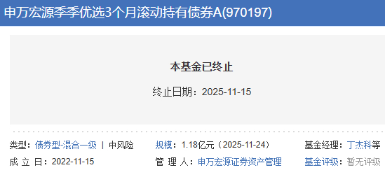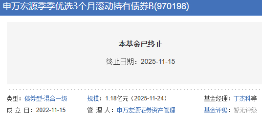 申万宏源季季优选3个月滚动清盘 成立3年盈利不足1成