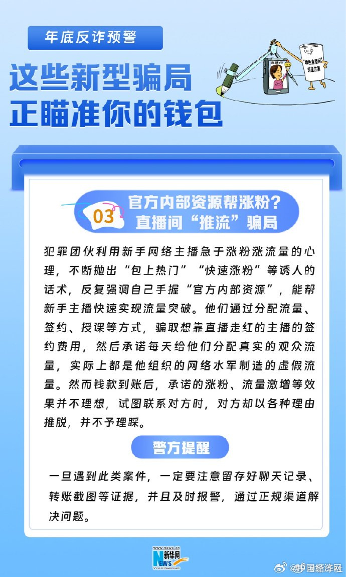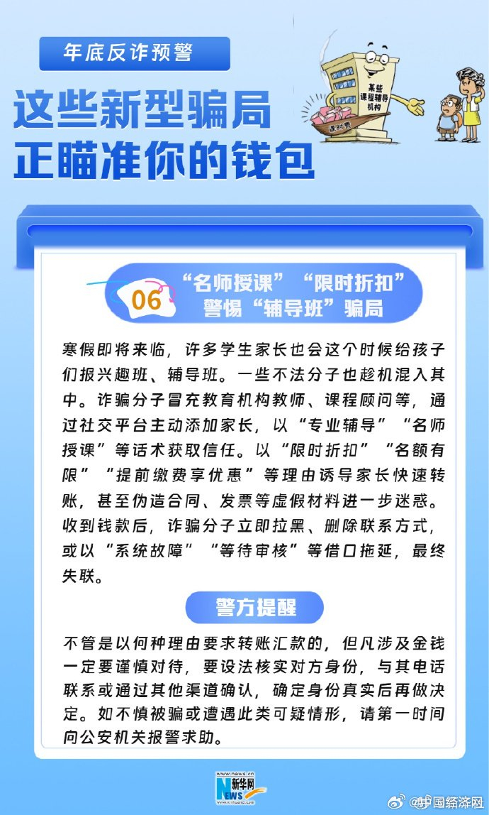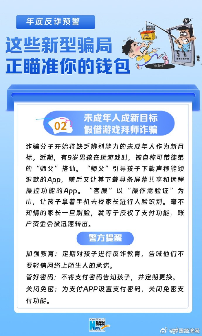 临近年底,新型诈骗活动频发。近期,全国多地警方已发布风险提示。为大家盘点了几类最新骗局及防范要点,帮助大家筑牢安全防线,守好“钱袋子”。戳图,一起了解↓(新华社)