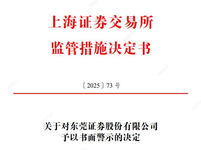 中国经济网北京1月7日讯 上交所于2025年12月31日发布关于对东莞证券股份有限公司予以书面警示的决定。