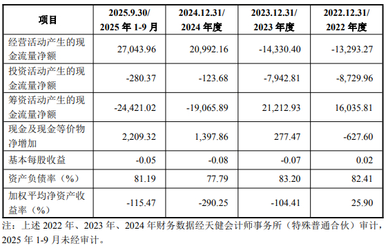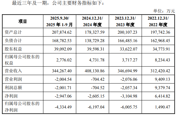 2023年度、2024年度、2025年1-9月,盈方微归属母公司股东的净利润分别为-6,005.75万元、-6,197.04万元、-4,334.49万元。