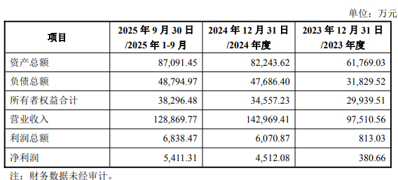 2023年度、2024年度、2025年1-9月,上海肖克利营业收入分别为97,510.56万元、142,969.41万元、128,869.77万元,净利润分别为380.66万元、4,512.08万元、5,411.31万元。
