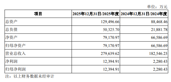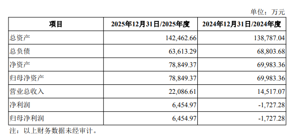 标的公司黄金天岳2024年度与2025年度总营收分别为1.45亿元、2.21亿元,归母净利润分别为-1727.28万元、6454.97万元。最近两年的主要财务数据如下: