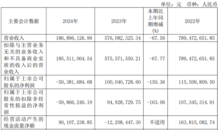 2024年,复洁科技的营业收入为1.87亿元,同比下降67.56%;归属于上市公司股东的净利润为-5,038.17万元,上年同期为1.00亿元;归属于上市公司股东的扣非净利润为-5,986.62万元,上年同期为9,492.87万元;经营活动产生的现金流量净额为9,010.72万元,上年同期为-1,220.84万元。