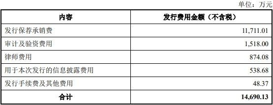 恒运昌公开发行新股的发行费用(不含增值税)合计14,690.13万元,其中,发行保荐承销费11,711.01万元。