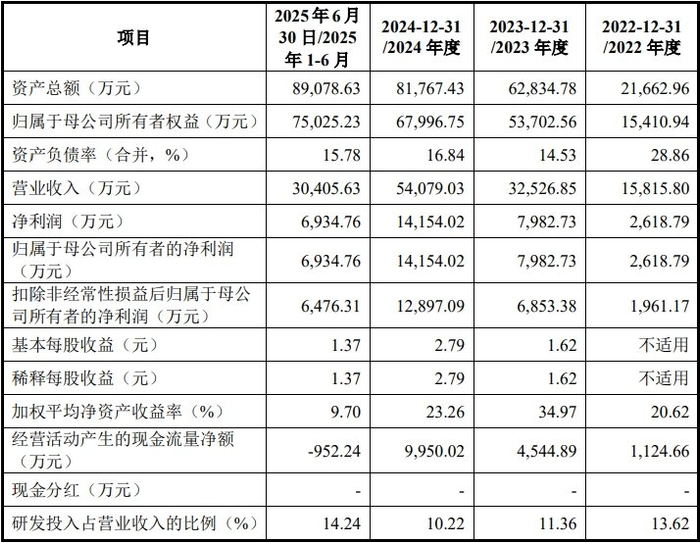2022年、2023年、2024年和2025年1-6月,恒运昌实现营业收入分别为15,815.80万元、32,526.85万元、54,079.03万元和30,405.63万元,实现净利润/归属于母公司所有者的净利润分别为2,618.79万元、7,982.73万元、14,154.02万元和6,934.76万元,实现扣除非经常性损益后归属于母公司所有者的净利润分别为1,961.17万元、6,853.38万元、12,897.09万元和6,476.31万元。