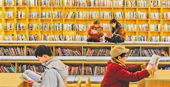 2月20日,小朋友在山东省淄博市高青县图书馆内看书。张维堂摄(中经视觉)