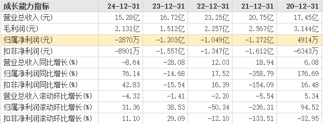 维科技术2020年至2024年归属于母公司所有者的净利润分别为4914万元、-1.272亿元、-1.049亿元、-1.203亿元、-2870万元,归属于母公司所有者扣除非经常性损益后的净利润-6343万元、-1.612亿元、-1.347亿元、-1.557亿元、-8901万元。