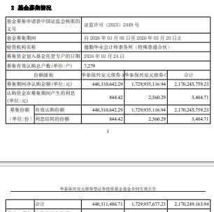 募集期间净认购金额2,170,245,759.23元,认购资金在募集期间产生的利息3,404.71元,募集份额合计2,170,249,163.94份。
