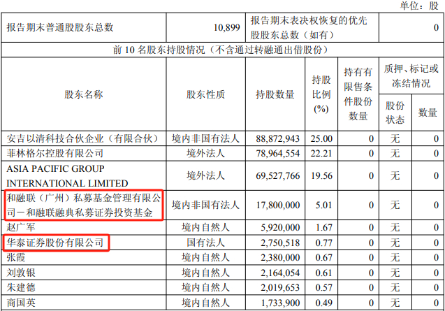 截至2025年9月30日,菲林格尔前10名股东分别为安吉以清科技合伙企业(有限合伙)、菲林格尔控股有限公司、ASIA PACIFIC GROUPINTERNATIONAL LIMITED、和融联(广州)私募基金管理有限公司-和融联融典私募证券投资基金、赵广军、华泰证券股份有限公司、张霞、刘敦银、朱建德、商国英。