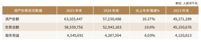 华瑞银行2025年度报告显示,2025年末,该行资产总额为631.05亿元,上年末为572.30亿元;负债总额为585.60亿元,上年末为529.43亿元。