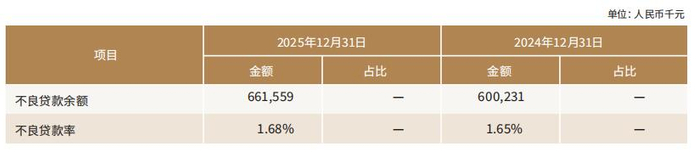 2025年末,华瑞银行不良贷款余额为6.62亿元,上年末为6亿元;不良贷款率为1.68%,上年末为1.65%。